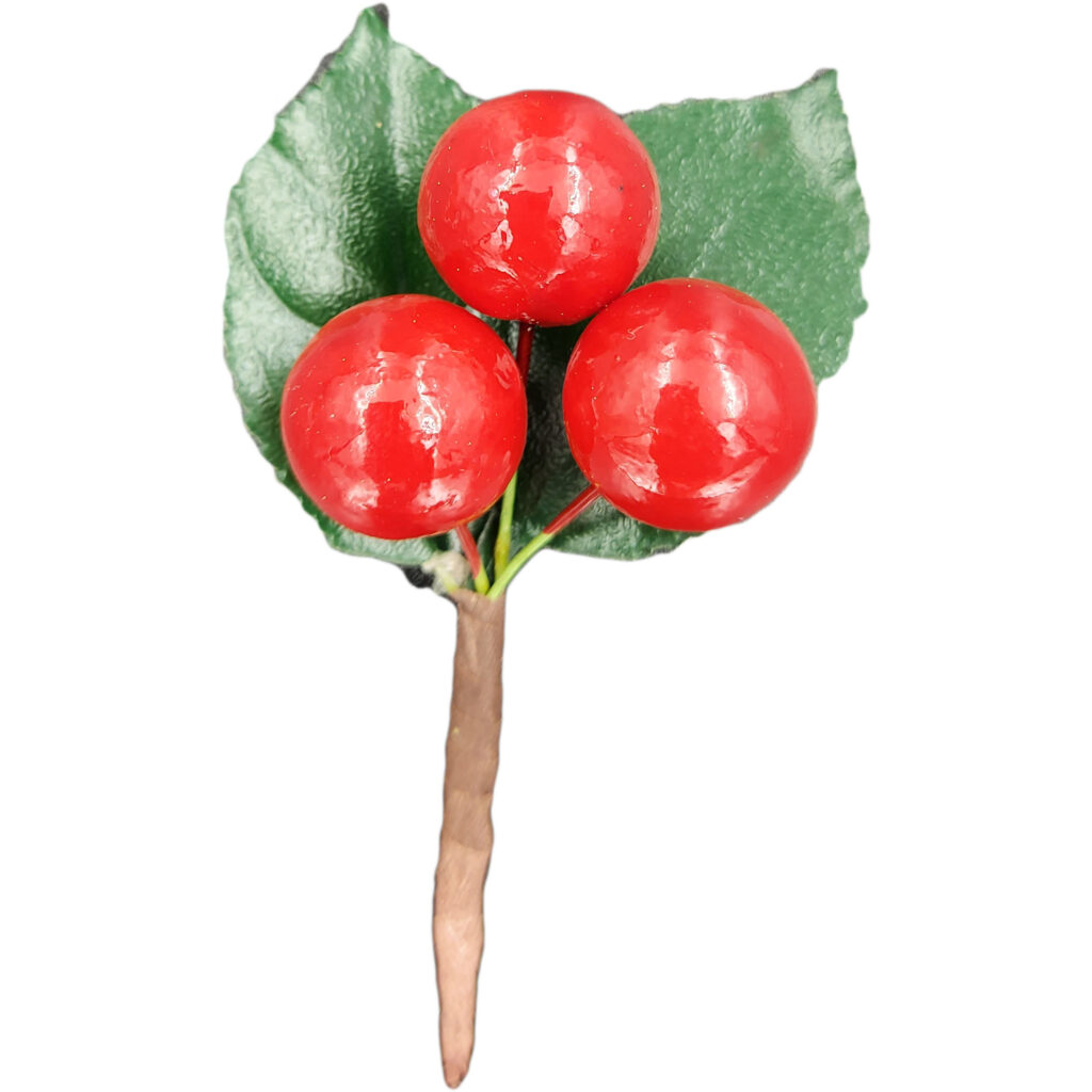 Kirschtuff, 3 Kirschen rot, Stiel braun umwickelt